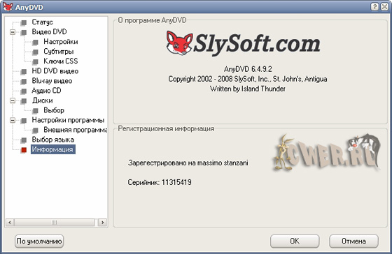 AnyDVD - предназначена для снятия защиты с любых DVD-дисков, так что вы сможете просматривать DVD-фильмы на компьютере с DVD-ROM, региональный код которого не соответствует этому DVD-диску. Даже если ваш привод не "обеззонен", у вас есть возможность копировать диски с любым региональным кодом напрямую с DVD-ROM на DVD±RW!