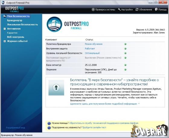 Скачать Agnitum Outpost Firewall Pro 2009 Build 6.5.2509.366.0663 (24 МБ):