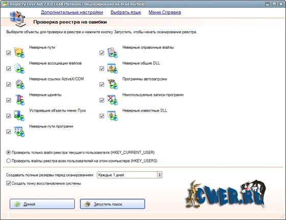 Утилита ищет неверные, поврежденные или лишние записи в реестре, пытается их исправить, а при невозможности этого - удаляет. Работа с RFA не вызовет трудностей, так как имеется достаточно удобный и понятный визард.
