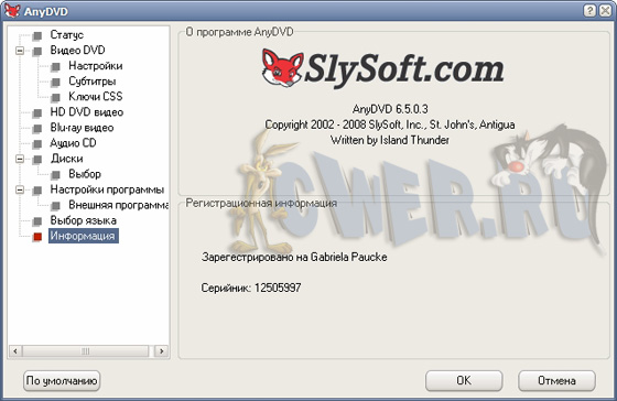 AnyDVD - предназначена для снятия защиты с любых DVD-дисков, так что вы сможете просматривать DVD-фильмы на компьютере с DVD-ROM, региональный код которого не соответствует этому DVD-диску. Даже если ваш привод не "обеззонен", у вас есть возможность копировать диски с любым региональным кодом напрямую с DVD-ROM на DVD±RW!