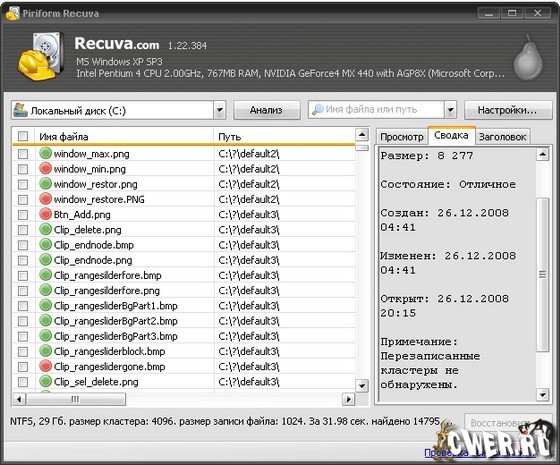 Recuva - небольшая бесплатная утилита, которая предназначена для восстановления файлов, удаленных с ПК случайно или потерянных в результате программного сбоя или ошибки в работе приложений. Проста в использовании, не требует специальных знаний для успешного использования.