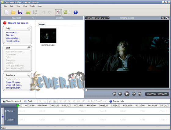 Camtasia Studio - мощная утилита для записи изображения с экрана в видеофайлы различных форматов, имеется возможность редактирования видео, есть встроенные Macromedia Flash (SWF) и видео проигрыватели. Camtasia захватывает действия и звуки в любой части Windows-систем и сохраняет в файл стандарта AVI.