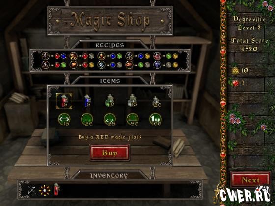 Для людей вновь настали нелегкие времена! Темные Силы взяли верх и заточили вас в четырех стенах. Выбор за Вами – последуете ли Вы за шутом или ведьмой – освободить ни в чем неповинных людей или оставить их навсегда в заточении. Преодолейте все 100 магических уровней и сразитесь с Темными силами, используя волшебные зелья и заклинания! Не позвольте им вновь одержать победу!
