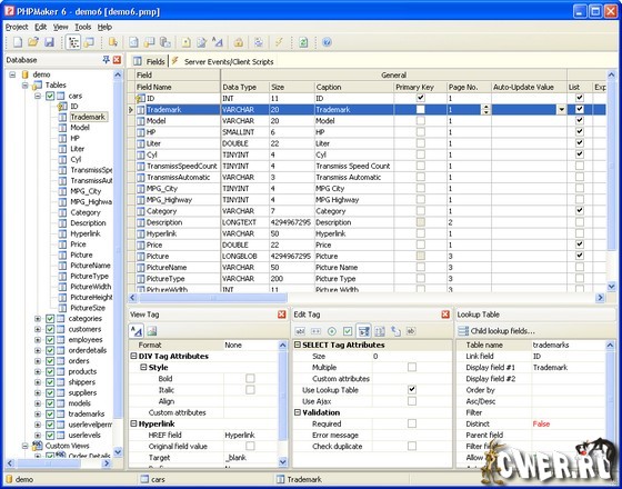 Создание PHP приложений, работающих с MySQL базами данных, может оказаться достаточно сложным процессом, но такой мощный инструмент, как PHPMaker, позволит вам делать это невероятно быстро и аккуратно. С помощью PHPMaker вы можете быстро создавать веб-сайты, которые позволять пользователям просматривать, редактировать, искать, добавлять и удалять записи из MySQL. Эта программа обладает множеством опций, которые позволят вам генерировать PHP приложения в зависимости от типа проекта, над которым вы работаете. Вы с легкостью разберетесь в программном коде этих приложений и при необходимости можете изменить его. Генерируемые PHP скрипты могут быть запущены как на Linux/Unix, так и на Windows серверах. Последние версии PHPMaker включает широкий ряд таких новых возможностей, как Enhanced View Page (страница расширенного просмотра), Registration Page (регистрационная страница), поддержка CAPTCHA, Ajax, а так же функции повышенной безопасности и многое другое.