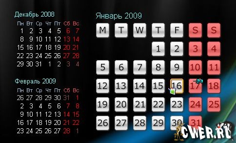 Это красивый и функциональный интерактивный календарь, который показывает на рабочем столе, поверх обоев активный календарь, Ваши заметки и задания, которые Вы запланировали на тот или иной день. Также есть напоминания для Ваших событий и заставка (хранитель экрана). Календарь может быть показан в традиционным виде или в виде значков. Предусмотрена возможность создания слоев для разных событий и подключение нескольких компьютеров к общему файлу (например, для работы в локальной сети).