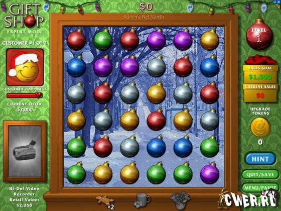 Ваш магазин подарков готов к открытию как раз к праздникам! Полюбуйтесь на падающие снежинки, мигающие огни и насладитесь звуками праздничной музыки, не забывая продавать своим покупателям подарки! Обрадуйте своих клиентов праздничными угощениями - горячим шоколадом и имбирным печеньем. Завозите в магазин новые товары и получайте огромную прибыль. Не забывайте, что счастливые покупатели заплатят Вам больше, что явно увеличит Ваш доход!