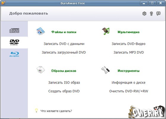 Простая и в тоже время мощная программа для записи и копирования любых дисков - CD, DVD, Blu-Ray, а также копирования CD и DVD. Программа позволяет выполнять все основные задачи по записи: работа с носителями CD/DVD, Blu-Ray; запись Audio CD и DVD-Video; копирование и прожиг образов и многое другое. Имеется многоязычный интерфейс, включая русский и поддержка Windows Vista.