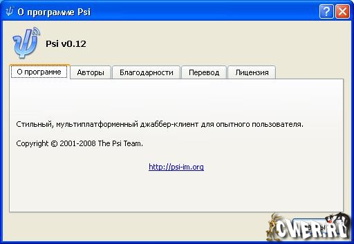 Psi - кросплатформенный клиент для общения в сети по протоколу Jabber, сочетающий в себе простоту и удобство. Распространяется в исходных кодах по лицензии GPL. Вы можете использовать Psi как под Windows, так и под Linux и также под MacOS. Причём можно использовать одни и теже профайлы (файлы с настройками), что позволит вам менять ОС и оставлять свои любимые настройки для клиента. Кроме того, в Psi есть возможность в одном окне держать много акккаунтов. Это удобно при использовании джабера несколькими людьми одновременно за одним компьютером. Psi обладает продуманным интерфейсом и надежна в работе.