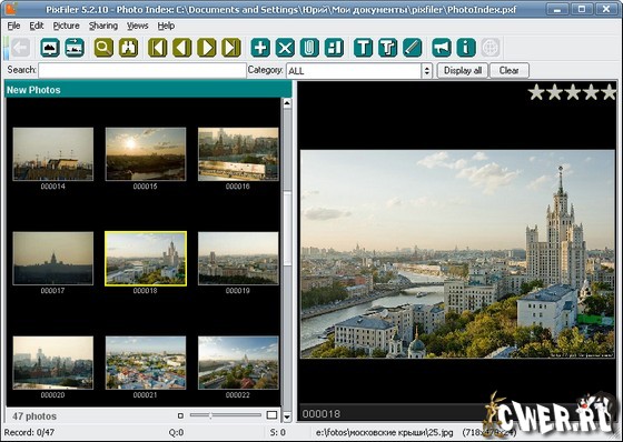 С цифровой камерой можно легко снимать множество фотографий, но не так просто отслеживать все фотографии, которые Вы сняли. PixFiler - это быстрая и простая программа, которая поможет вам систематизировать и разместить ваши фотографии. Просто добавьте фотографии на Photo Index, назовите и укажите категорию. С этой программой очень легко найти и просмотреть любую фотографию в считанные секунды. С помощью Navigator View вы можете просмотреть фотографии по дате, местности, событиям, категориям и папкам. Создайте автозапускающийся компакт-диск с фотографиями и отправьте их друзьям и родственникам. Есть автоматизация создания простых веб-страниц, для того чтобы весь мир мог видеть ваши фотографии. Также можно распечатать фотографии на принтере. Есть возможность копирования и конвертирования многих графических файлов за раз. Можете быстро изменить размер ваших фотографий и просмотреть EXIF мета данные. Если вы храните фотографии на компакт-дисках, PixFiler будет отслеживать Ваши компакт-диски и указывать, какой диск необходимо вставить. Эскизы будут храниться на жестком диске, поэтому Вы можете просматривать миниатюрные копии без компакт-диска. Поддерживается работа с файлами JPEG, TIFF, GIF, BMP, PSD, PNG, PCD, PCX, TGA, ICO, PBM, RAS, WBMP, CUT, IFF, KOA, MNG, а также с RAW-файлами форматов CRW, CR2, NEF, X3F, MRW, OPF, PEF, RAF.
