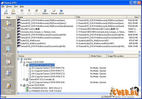 Fantom DVD - это эмулятор CD/DVD-дисков. Подобно любой другой программе этого типа, Fantom DVD создает на жестком диске ПК пользователя образ диска с данными, аудио или видео информацией, а затем предоставляет доступ к этим данным другим программам так, словно искомый диск находится в приводе. Fantom DVD поддерживает работу со многими форматами CD/DVD, имеет возможность работы с 31 образом одновременно, обеспечивает несоизмеримо большую (по сравнению с CD) скорость передачи данных между приложением и образом диска. Имеется опция записи информации на диски.