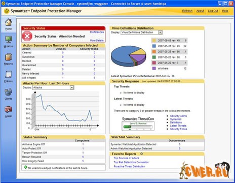 Symantec Endpoint Protection снижает расходы на администрирование, связанные с управлением разными средствами защиты удаленных рабочих мест, объединяя удостоенные многих наград технологии Symantec, Sygate, Whole Security и Veritas. Это гарантирует эффективную работу и обеспечивает заказчиков лучшим в своем классе и в то же время полностью интегрированным решением, которое функционирует на разных платформах и поддерживается одним поставщиком. Его поддерживает также сеть Symantec Global Intelligence Network, в которую входят восемь центров Symantec Security Response, четыре центра Symantec Security Operations, 120 млн систем и свыше 40 тыс. датчиков, развернутых в 180 странах.
