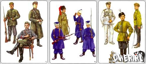 В Гражданской войне значительную роль играли национальные армии, т.е. вооруженные силы различных государственных образований, появившихся после октября 17-го. Все эти вновь созданные армии одновременно находились в состоянии войны как с белыми войсками, так и с большевиками. Кроме того, некоторые из них вели боевые действия друг против друга.