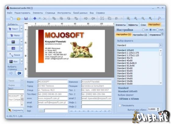 BusinessCards MX - программа для создания и проектирования визиток от польского разработчика. При помощи этой полезной программы вы легко и быстро спроектируете и распечатаете профессиональные визитки. Интерфейс программы спроектирован так, чтобы даже у начинающего пользователя не было проблем с использованием данной программы. Процесс проектирования заключается во вставке готовых доступных в программе элементов таких, как текст, фигуры, изображения и фон, а также произвольном их перемещении на разрабатываемом проекте. Программой используются шаблоны визиток, которые можно подготовить самому или использовать готовые образцы визиток, доступные в программе. Интерфейс имеет многоязычную поддержку, включая поддержку русского языка.