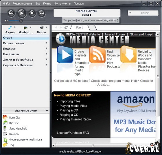 J.River Media Center - мультимедийный центр (раньше назывался Media Jukebox). Проигрывает большинство популярных аудио и видео форматов, включая MP3, аудио CD (поддерживает CDDB) и DVD, может преобразовывать CD-аудиотреки в WAV и MP3, переписывать на жесткий диск виниловые диски и кассеты (убирая при этом помехи и шумы), а также создавать аудио-CD, причем для всех этих функций программа имеет множество настраиваемых параметров. Кроме этого, есть очень хороший и мощный по своим возможностям органайзер мультимедийных файлов, медиаредактор, эквалайзер, встроенный DSP и удобный планировщик заданий для автоматизации процессов проигрывания/записи, а также поддержка пульта ДУ. Из необязательных, но приятных функций - становящаяся уже почти стандартом для "приличных" программ возможность изменения внешнего вида с помощью скинов, мини-режим проигрывателя и "телевизор" (c картами ATI).