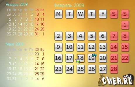 Это красивый и функциональный интерактивный календарь, который показывает на рабочем столе, поверх обоев активный календарь, Ваши заметки и задания, которые Вы запланировали на тот или иной день. Также есть напоминания для Ваших событий и заставка (хранитель экрана). Календарь может быть показан в традиционным виде или в виде значков. Предусмотрена возможность создания слоев для разных событий и подключение нескольких компьютеров к общему файлу (например, для работы в локальной сети).