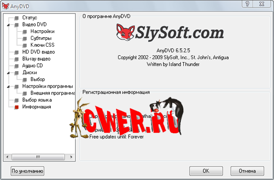 AnyDVD HD - программа для дешифрования CSS и снятия региональной защиты с любого DVD диска в любом DVD-ROM устройстве. Как насчет немедленного просмотра DVD видео на компьютере c DVD-ROM, региональный код которого не соответствует этому DVD диску, не переписывая его на жесткий диск целый час, используя специальные дешифрующие утилиты? AnyDVD обнаружит это несоответствие и автоматически снимет защиту. Это займет лишь пару секунд. Даже если ваш DVD-ROM не обеззонен, у вас есть возможность просматривать диски с любым региональным кодом. Запустите программу для записи DVD и загрузите диск, который вы хотите скопировать. Не нужно предварительно переписывать его на жесткий диск. Все уже взломано! Во время копирования на DVD±RW, AnyDVD будет расшифровывать защищенные данные "на лету". В результате вы получаете незащищенную резервную копию вашего DVD диска.