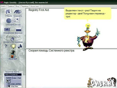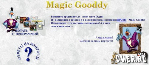 Запустив программу, ребёнок (а она будет интересна не только детям, но также и взрослым пользователям) погружается в особый неповторимый мир сказки, в котором живёт Magic Gooddy. «Волшебник Гудди» — это забавный мультимедийный гусь, именем которого названа программа. Благодаря помощи Гудди, работа с ней превращается в увлекательное и полезное занятие. В программе можно переводить тексты с английского языка на русский язык и обратно.