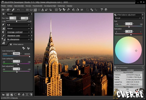 SILKYPIX Developer Studio - профессиональный пакет от японских разработчиков, который поможет вам отредактировать и обработать ваши фотографии полученные с цифровых камер. Программа не уступает , а в чем то и превосходит всем известный Adobe Photoshop Lightroom. Данный пакет дает вам возможность регулировать баланс белого, корректировать экспозицию, устранять "цифровые шумы" , регулировать - резкость, яркость, цветность, контрастность и многое другое. Программа поддерживает огромное количество фотоаппаратов и станет незаменимым помошником не только начинающего, но и профессионального фотографа.