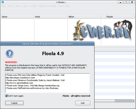 Имеется и такая функция, как "ремонт" iPod в случае, если произошел сбой в работе программного обеспечения этого плеера. Floola может оказаться полезной и владельцам телефонов Motorola, имеющих встроенные средства взаимодействия с iPod.