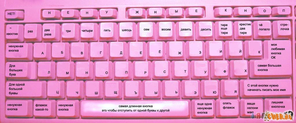 На упомянутой картинке была запечатлена клавиатура, на каждой из кнопок которой было нанесено необычное пояснение ее функций: так, на пробеле было написано "Самая длинная кнопка", на клавише ввода - "Самая большая кнопка" и так далее.