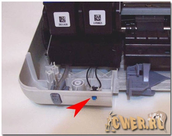 3. Через открытую крышку картриджей видно - как только начнется печать этикетки нажатием установленного выключателя останавливаем печать, через прорезь в задней крышке устанавливаем диск с покрытием для печати на струйном принтере, так чтобы край диска оказался под картриджами.