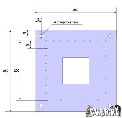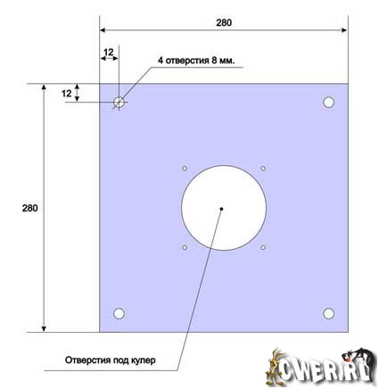 Это чертёж, по которому было вырезано зеркальное стекло. В середине я сделал отверстие для куллера.