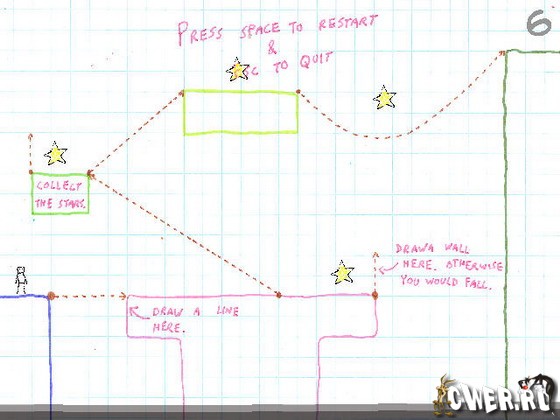 Pencil and Paper головоломка в который вы управляете безмозглым скетчменом которого нужно довести до конца уровня. Но не просто довести, а собирать звезды для того что бы пройти на следующий уровень. Поле игры бумага, в вашем распоряжении ваша мышка - карандаш - ей вы рисуете стены, мостики, дорожки что бы скетчмен мог преодолевать препятствия. В игре 8 уровней - кому это покажется слишком легким, в чем есть сомнения, ведь не каждый с первого раза пройдет каждый уровень, хотя, если окажутся такие - есть тяжелый режим.