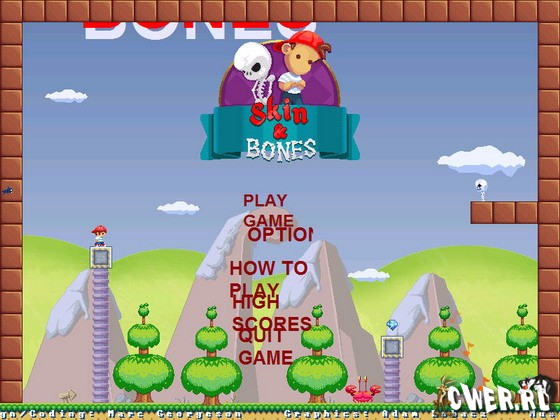 Skin and Bones are two unlikely friends thrown together in an even unlikelier situation. A wizard wants gems, and in order to be set free, Skin and Bones must retrieve the gems. Using their unique abilities, Skin's ability as a living person to collect things and jump a bit higher, and Bone's invulnerability to water, fire, spikes and all mater of enemies, they set out on a grand quest.