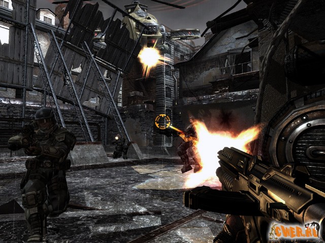 Не отстает от дизайна и графическая основа - объемные текстуры, детализированные ландшафты. Движок игры поддерживает все графические технологии последних лет. Картинка очень радует глаз, причем все это находится в движении. Это невозможно описать, а статичные скриншоты не могут передать эту динамику. Просто надо смотреть и восхищаться, как языки пламени от огнемета прожигает воздух, как луч от прожектора рассекает тьму, как тень падает от ворот и решеток, как разорванные на клочья от взрывов тела разлетаются в разные стороны, как экран заливается эффектом blur при активации своих способностей. Правда и компьютер для всего этого великолепия потребуется не слабый. Но, я думаю, после F.E.A.R. вы уже успели проапгрейдится.