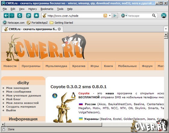 Скачать Portable Netscape Navigator 9.0.0.6 (6 МБ):