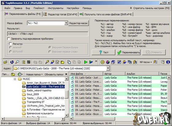 Скачать Portable Tag&Rename 3.5.1 (2,8 МБ):