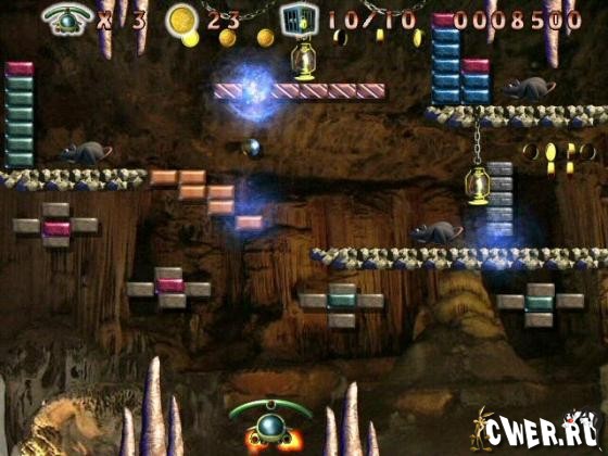 Игра приведет Вас к 16 новым землям, таким как руины, пещеры или храмы. Пройдите все уровни, чтобы спасти 160 забавных небольших существ, и использовать способности Вашего нового космического корабля, захватить сотни монстров! Подготовьтесь к поистине разоряющему арканоиду, в котором Вы будете путешествовать через 160 уникальных уровней.