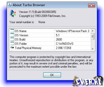 FileStream Turbo Browser - это утилита, которая может полностью заменить Windows Explorer. Она обладает функциями как для манипуляции файловой системой компьютера, так и для навигации по Internet. Из поддерживаемых данной утилитой возможностей отметим, в частности, возможности просмотра содержимого файлов практически любого формата (текстовые файлы, документы, электронные таблицы, графические и мультимедийные файлы), поиска файлов, включая поиск по атрибутам файлов. Turbo Browser поддерживает Zip-архивы и позволяет работать с ними как с обычными папками. Также поддерживаются самораскрывающиеся архивы в форматах EXE, CAB, ARJ и LHA.