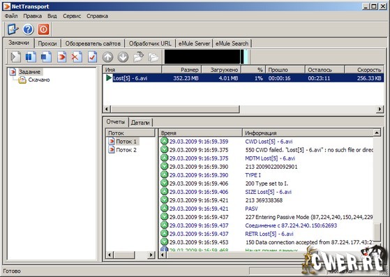 Net Transport - популярный менеджер загрузки файлов, позволяющий быстро и эффективно скачивать файлы. Программа поддерживает несколько протоколов передачи данных: HTTP/HTTPS, FTP/SFTP (SSH File Transfer Protocol), MMS (Microsoft Media Services), RTSP (Real-Time Streaming Protocol). Поддерживается докачка после обрыва связи, разбивка на части, прокси, интеграция в браузер и др.