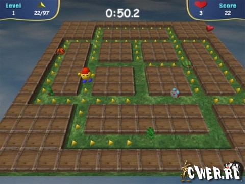 Добро пожаловать в Небесный лабиринт. Необычный 3D лабиринт и анимированные персонажи отличают этот римейк Пакмана от других аркадных игр. Проведите вашего героя через лабиринт и соберите все кристаллы, но будте осторожны: ваши враги попытаются остановить вас. Полная версия включает 80 лабиринтов с защитными щитами, бонусами заморозки, волшебными мостами и другими фичами. Вам понравятся эффекты и веселая музыка в игре. Выберите вашего героя для великого путешествия: Пак-боя или Пак-герл. Играйте уровень за уровнем, сражайтесь с врагами и побеждайте! Эта игра отлично сочетает элементы стратегии и классической аркады, требует хорошей координации. Чистое удовольствие для любителей аркад.