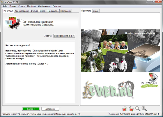 VueScan Pro - программа для работы со сканерами HP, Minolta, Nikon, Polaroid, Epson, Canon и другими. Может работать с внутренней глубиной цвета. VueScan Pro поддерживает автоматическую и ручную настройку большинства параметров и пакетный режим сканирования. Поддерживается более 500 моделей сканеров с определенным перевесом в сторону слайд-сканеров — Nikon, Minolta, Polaroid, Microtek, Epson...