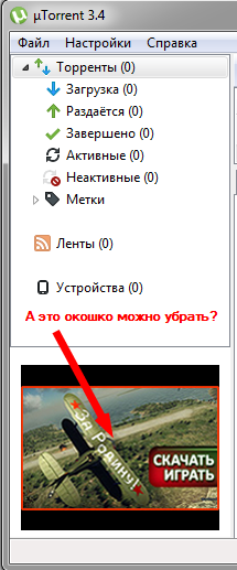 2. Настройки -> Дополнительно -> offers.sponsored_torrent_offer_enabled / offers.left_rail_offer_enabled -> false -> перезапустить программу