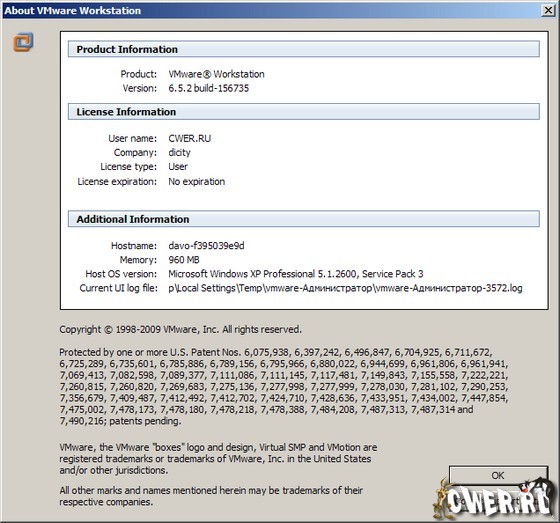 Скачать VMware Workstation 6.5.2 Build 156735 (462 МБ):