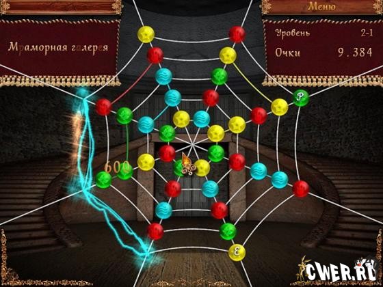 Вам предстоит пройти долгий путь, в ходе которого нужно восстановить утраченную красоту королевских покоев. Для этого собирайте цепочки из разноцветных шариков, которые злодей развесил на паутине. На некоторых шариках есть буквы, и уровень закончится только тогда, когда вам удастся собрать их все.