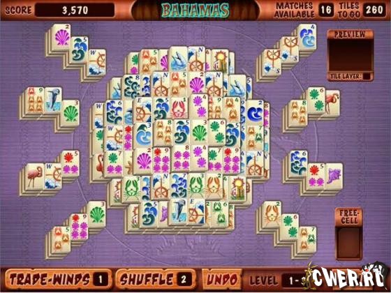 Совершите незабываемое путешествие в стиле Маджонг по 12 экзотическим островам в Карибском море и соберите все подарки и причудливые открытки! Будьте независимы, фантазируйте и выбирайте любой понравившийся расклад из 15 - от самого легкого до невероятно трудного! Неважно как именно Вы преодолеете трудности - главное выжить - ведь дело того стоит! Пронеситесь через все испытания со скоростью ветра, используя дополнительные возможности - Trade Winds и Tile Focusing. Отправляйтесь в этот незабываемый круиз прямо сейчас.
