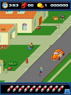 В этой игре вам предстоит почувствовать себя развозчиком почты. У вас есть лишь велосипед и куча газет и писем. Доставляйте их читателям, разъезжая вдоль пригородной улицы, и ищите новых подписчиков. Только будьте осторожны, ведь на пути могут встретиться масса препятствий! Размеры экранов: 176х208, 240х320.