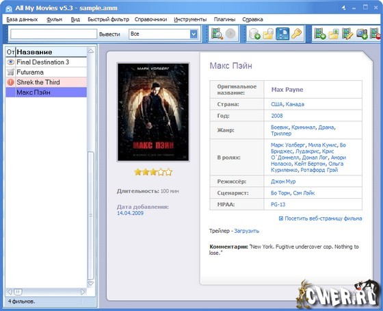 All My Movies - программа для тех, у кого большая коллекция различных фильмов, нуждающихся в систематизации. Это простой в использовании инструмент для создания каталога вашей коллекции видео. Не важно, на каком носителе находятся ваши фильмы, будь то DVD, CD, VHS кассеты или что-нибудь еще...