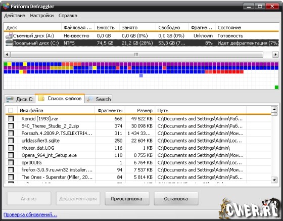 Defraggler - программа для дефрагментации жестких дисков. По словам разработчика, Defraggler отличается от других продуктов на рынке, прежде всего, тем, что позволяет дефрагментировать не только жесткий диск целиком, но и отдельные файлы. Программа предлагает простой и понятный интерфейс, поддерживает Windows 2000, 2003, XP и Vista, в том числе 64-битные версии, работает с файловыми системами FAT32 и NTFS.