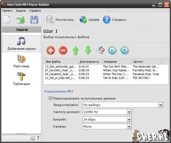 - Создай Flash MP3 Player, добавляй музыку на свой веб-сайт и блог (MySpace, Google Blog, MSN Space и все остальные популярные блоги) всего за пару кликов.