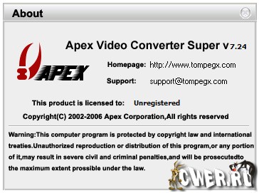 Apex Video Converter Super - это очень мощный конвертер, который поможет вам преобразовать ваши видео файлы из одного формата в другой. Он с легкостью конвертирует файлы форматов AVI, MOV, QuickTime, MPEG, WMV, ASF, RM, RMVB, 3GP, MP4 в AVI, MPEG, VCD, DVD, MOV, RM, RMVB, WMV, ASF, iPod, PSP, 3GP, Xbox, PPC, PMP. Высокая скорость, дружественный интерфейс это неоспоримые преимущества этой программы.