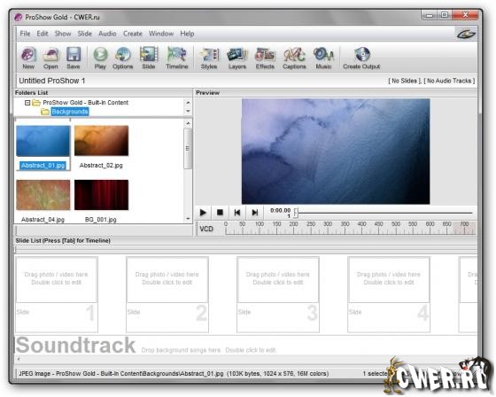 Photodex ProShow Gold имеет в арсенале 170 эффектов перехода между слайдами плюс возможность загрузить звуковое сопровождение, многочисленные навороты и прочие очень полезные вещи, которые в обязательном порядке пригодятся вам для создания профессионального слайд-шоу.