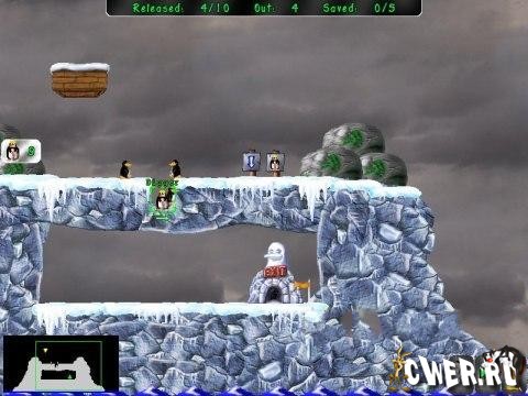 Pingus is a Lemmings-like game. Pingus has started at the end of 1998 with the simple goal to create a Free (as in freedom, not as in free beer) Lemmingstm clone. The Free means you get the sources and are allowed and encouraged to change and distribute them. You basically get everything that I used to create this game. In the years it has grown than quite a bit over the original goal and become something more than just a clone, we have original artwork, a built-in level editor, new actions, multiplayer and a few other features.