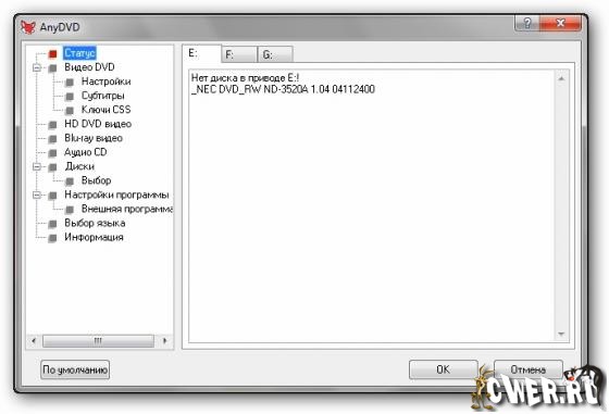 AnyDVD - предназначена для снятия защиты с любых DVD-дисков, так что вы сможете просматривать DVD-фильмы на компьютере с DVD-ROM, региональный код которого не соответствует этому DVD-диску. Даже если ваш привод не "обеззонен", у вас есть возможность копировать диски с любым региональным кодом напрямую с DVD-ROM на DVD±RW!