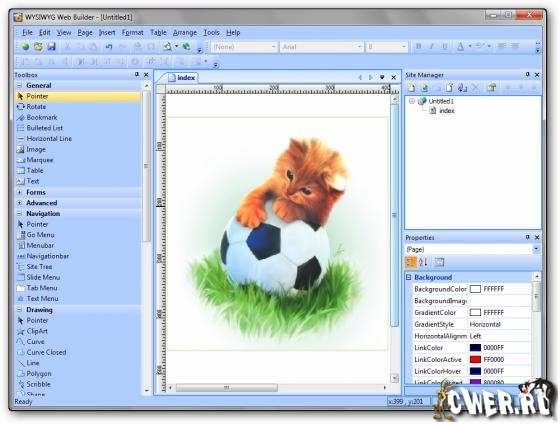 WYSIWYG Web Builder - программа для создания веб-страниц, которая автоматически создает HTML-код, в то время, как вы просто размещаете объекты, т.е. знание HTML от вас совершенно не требуется. Просто перетащите необходимые объекты в любое место страницы. После этого останется только закачать получившиеся файлы на сервер, с помощью встроенного инструмента "Публикация". Имеет, практически, все возможности MS Frontpage, но содержит значительно больше инструментов для работы с объектами (изображения, текст, таблицы и т.д.). Благодаря WYSIWYG Web Builder веб-страница в Интернете будет иметь точно такой же вид, как на экране ПК, независимо от используемого браузера.
