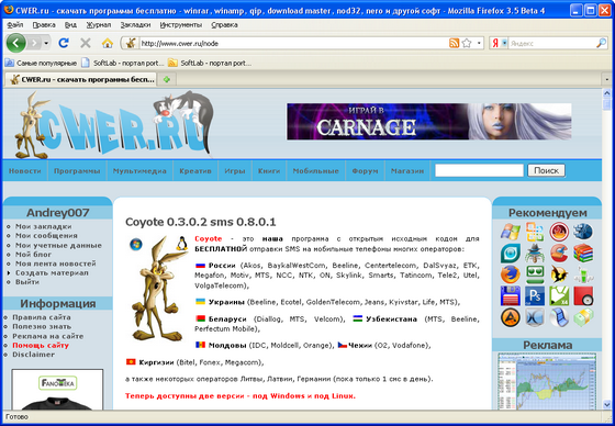 Скачать Mozilla Firefox 3.5 beta 4 Portable (9.88 МБ):